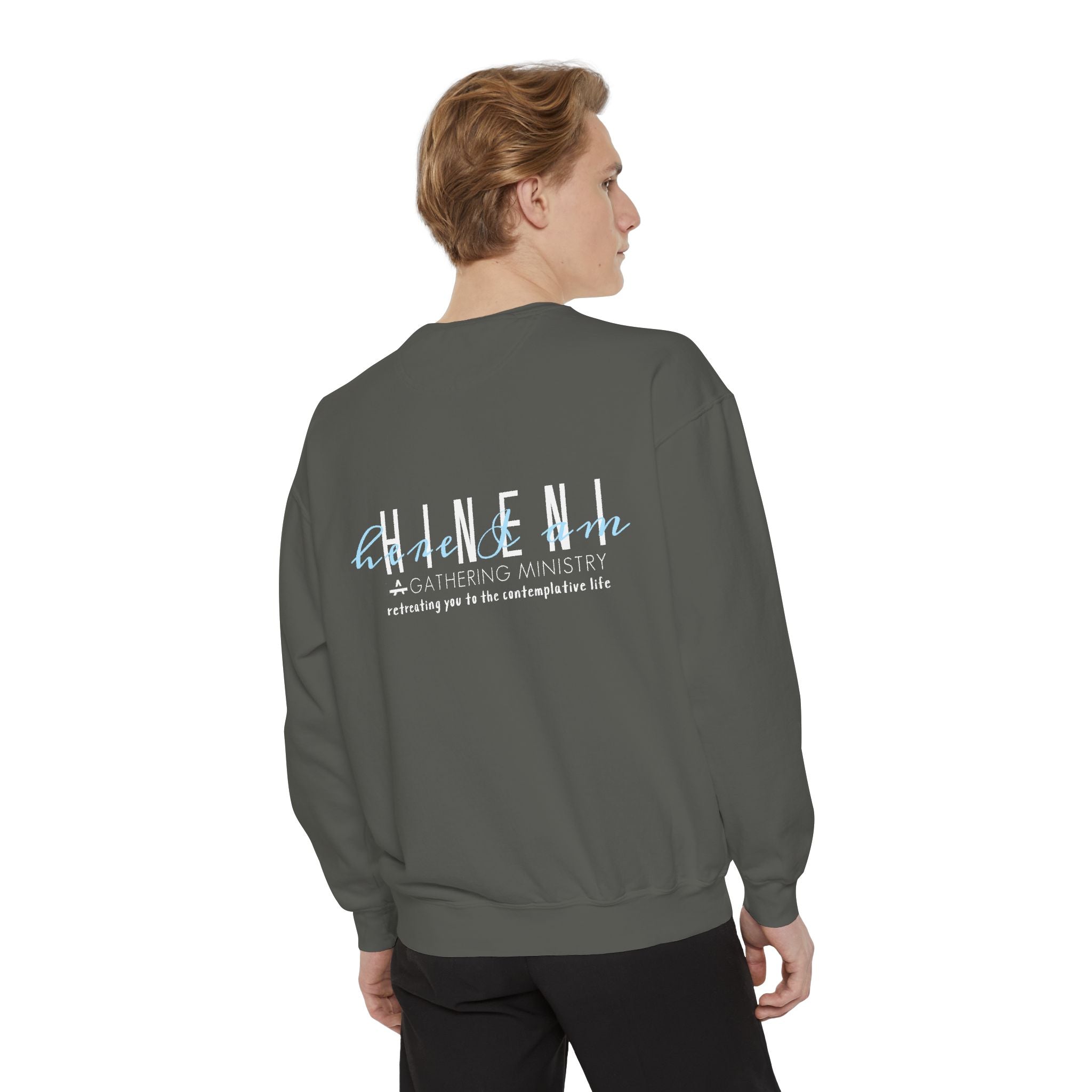 Hineni Awakening Retreat Garment-Dyed Sweatshirt design 2 sides