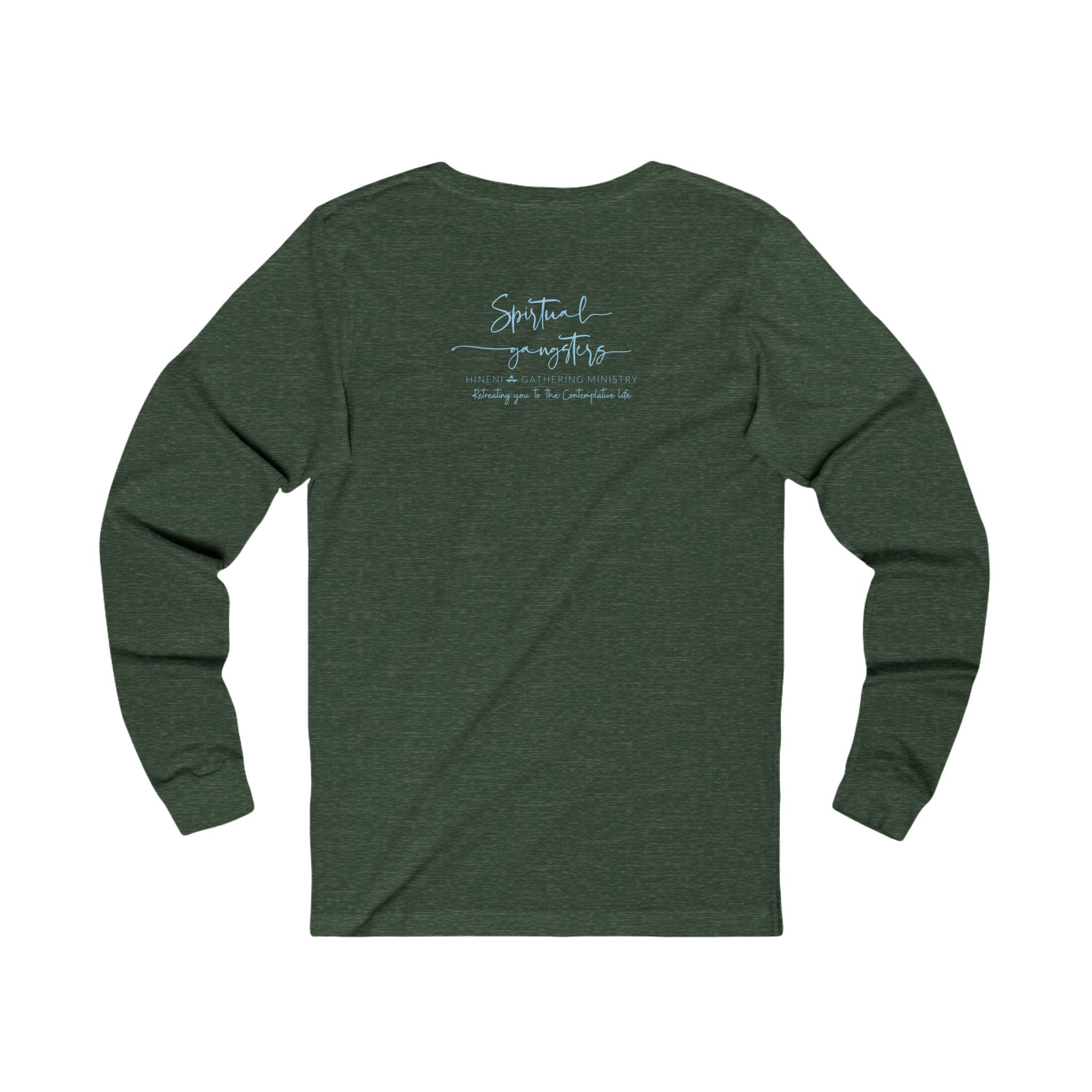 Hineni Spiritual Gangster logo on long sleeve heather tshirts